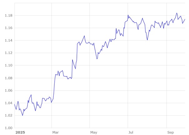 Euro gegenüber US-Dollar in 2025